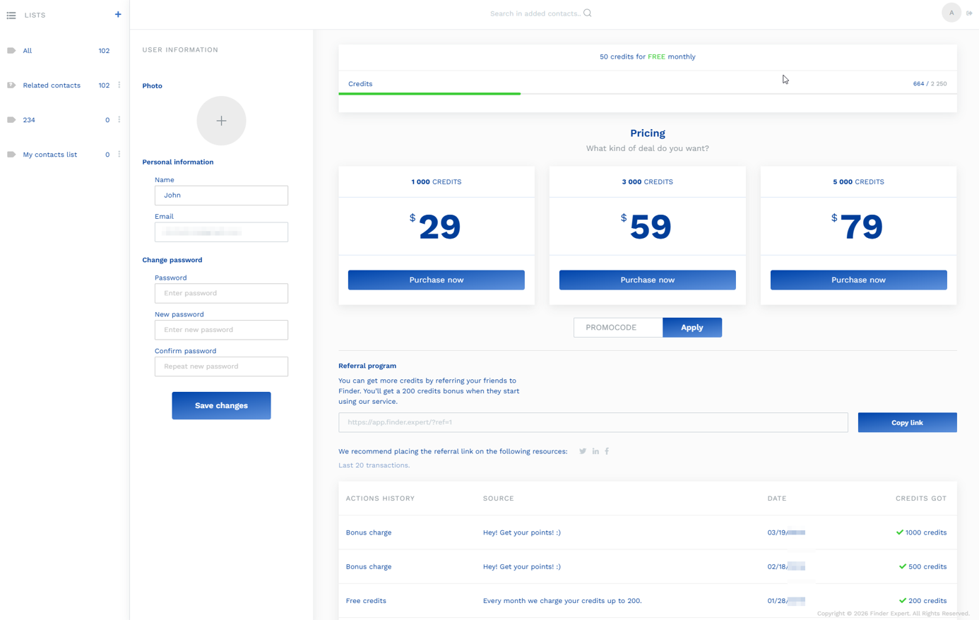 Account setting info  https://app.finder.expert/settings